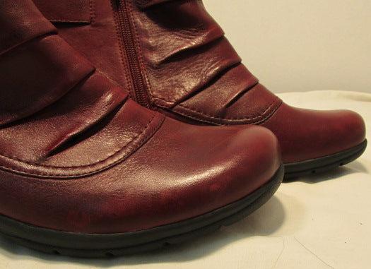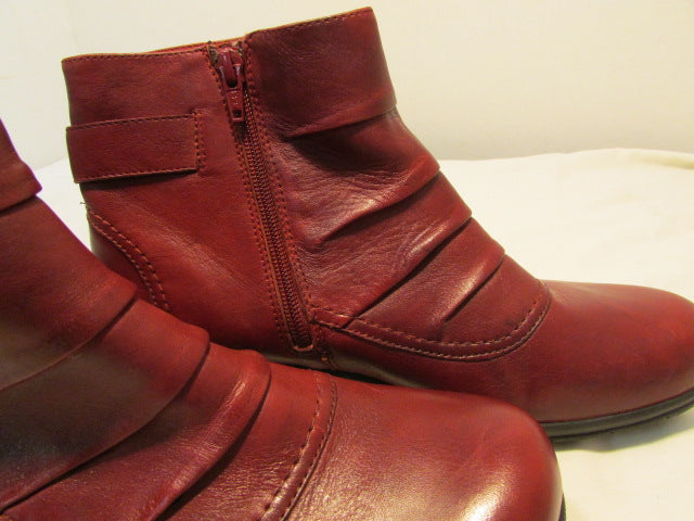 Clarks Dark Red Leather Ankle Boots with Bronze Hardware
